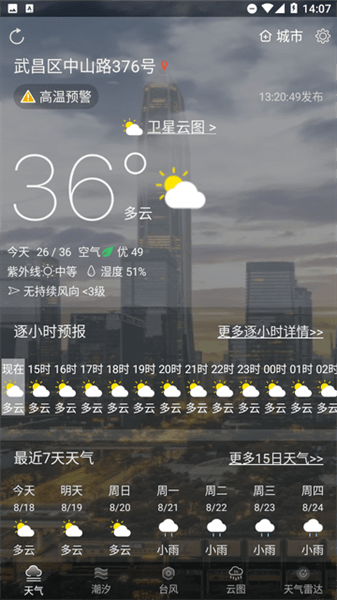1、实时更新:实时更新天气数据,保证用户获取的信息是最新的,用户无需担心天气预报过时。系统每15分钟自动刷新数据,遇到重大天气变化时还会推送即时提醒。