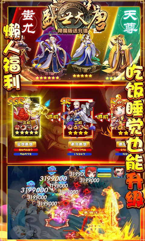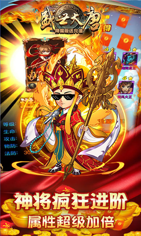 《盛世大唐福利版》是一款以西游神话为背景的RPG手游,玩家将扮演秩序重塑者,通过收服各路仙神伙伴来斩妖除魔。游戏上线即送VIP特权,无限商城让玩家可以直接用元宝购买海量道具,每日登录还能兑换真实充值卡。独特的七十二变修行系统让你体验成为三界霸主的快感。游戏还设有群仙比武、封神榜、大闹天宫等丰富PVP玩法,更有三界战场和仙盟系统带来更多社交乐趣。每日登录即可领取十连抽券、万能碎片等豪华福利,让玩家轻松享受游戏乐趣。