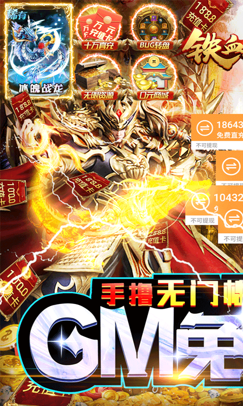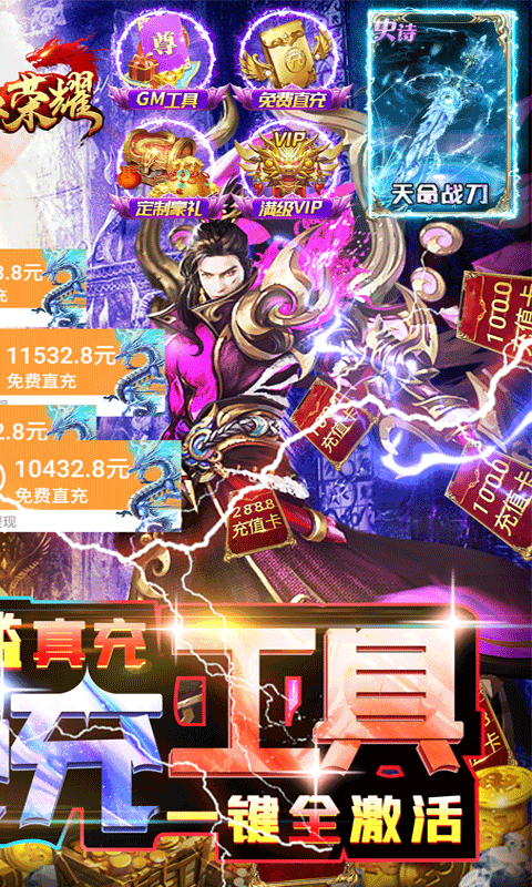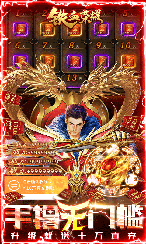 2、充值比例1:50000,每日更有超高额外充值返利活动,专属扶持礼包让充值更划算,平民玩家也能轻松获得顶级装备!