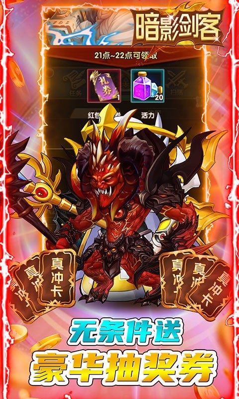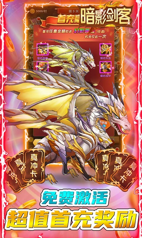2.新玩家免费激活超级首冲礼包,可从全图鉴中自选SSR级幻彩英雄,同时获得对应职业的整套传说级神装,助你快速成型战力。