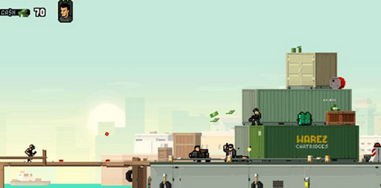 采用了横版射击类的玩法,也同样的采用了像素风格的画面射击,整个游戏玩起来还是十分简单粗暴的。这款游戏在steam平台已经推出好长一段时间了,不过一直都是处于抢先体验的阶段,并未推出正式版。此前《监狱跑轰》在苹果商店中上架的时候,就有不少人将其称为《热枪》的续作。所以不难猜到,两款游戏在不少地方是十分相似的。