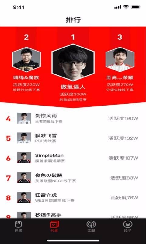 4、排行榜页面新增了分区功能,可以按游戏类型、活动类型或区域查看不同榜单。用户点击上榜者头像可以查看其社交主页,还能直接发起聊天或关注。