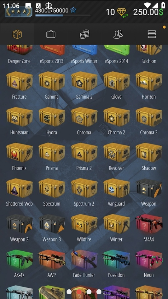 1、案件:在这里您可以选择要打开的箱子或纪念品。只需点击您想打开的板条箱。完全免费开放案例!如果您觉得有钱,甚至可以选择打开高级定制案例!游戏提供数十种不同类型的宝箱,包括常规武器箱、纪念品包等,每种都有独特的物品池。