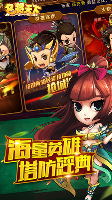 《名将天下》是一款以三国为背景的Q版卡通风格策略塔防手游。游戏采用清新可爱的画风,将三国名将重塑为萌系少年形象,让玩家在轻松愉快的氛围中体验经典战役。作为主公,你将通过塔防布阵、武将养成、资源调配等多元化玩法,逐步壮大势力。游戏包含丰富的副本挑战、竞技对抗和国战系统,让你既能体验策略烧脑的乐趣,又能感受热血沸腾的战场对决。无论是单人闯关还是多人协作,都能找到属于自己的游戏乐趣。