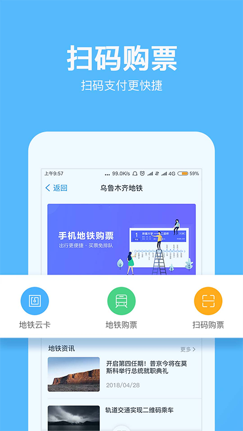 乌鲁木齐地铁app是由乌鲁木齐城市轨道集团有限公司开发的一款地铁出行软件,乘客可以通过该app进行线上购票,可以各车站ITM(综合机)上取票。软件提供路线查询、手机购票支付等功能,通过二维码扫码支付,方便用户进站坐车,真正实现“线上购票、车站取票”的手机购票新方式。