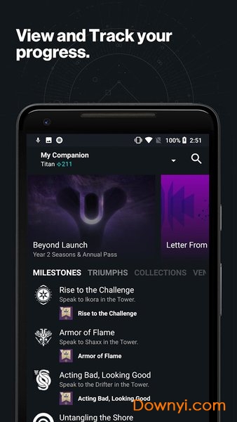 天命2手机app是一款专为《天命2》玩家设计的全能辅助工具。这款应用不仅能让玩家随时掌握最新游戏资讯,还能参与社区讨论、查询装备数据、查看攻略指南以及追踪个人战绩。通过整合社交功能,玩家可以轻松组建战队、管理公会,实现游戏内外的无缝连接。无论是新手还是资深玩家,都能通过这款app获得更优质的游戏体验。目前支持PlayStation Network、Xbox Live和Battle.net平台登录,赶快下载体验吧!