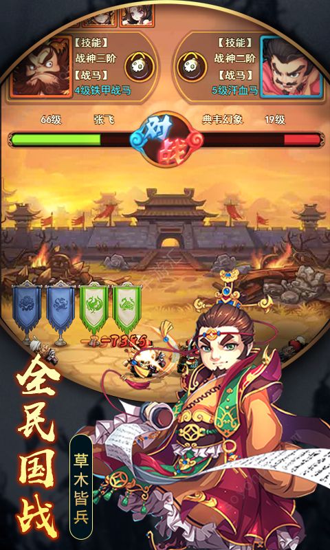 2、卖萌武将全新登场,新一代的动漫立绘打造群英汇聚的时代;游戏角色采用Q版动漫风格设计,既保留了三国人物的经典特征,又增添了可爱的萌系元素。每个武将都有独特的表情和动作,让历史名将焕发出全新的活力。
