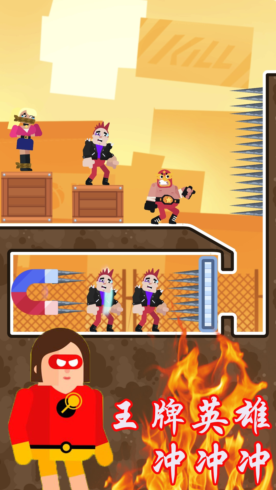 《王牌英雄冲冲冲》是一款充满欢乐与刺激的休闲竞技游戏,玩家将操控个性鲜明的英雄角色,在爆笑的闯关过程中展开激烈对决。游戏的核心玩法简单却充满策略性——你需要精准控制英雄的冲击方向,将对手撞出屏幕边界即可获胜。随着关卡推进,玩家可以解锁各种炫酷技能和特殊能力,搭配丰富的服装系统,打造独一无二的战斗风格。游戏采用夸张的物理引擎,让每一次碰撞都充满戏剧性效果,配合搞笑的角色动作和场景互动,为玩家带来持续不断的欢乐体验。