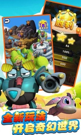 动画精美的卡通风格:游戏采用色彩鲜艳的卡通风格画面,角色和场景设计充满童趣。流畅的动画效果和生动的特效,为玩家带来愉悦的视觉体验。无论是防御塔的攻击动画,还是敌人的移动效果,都展现出了极高的制作水准。