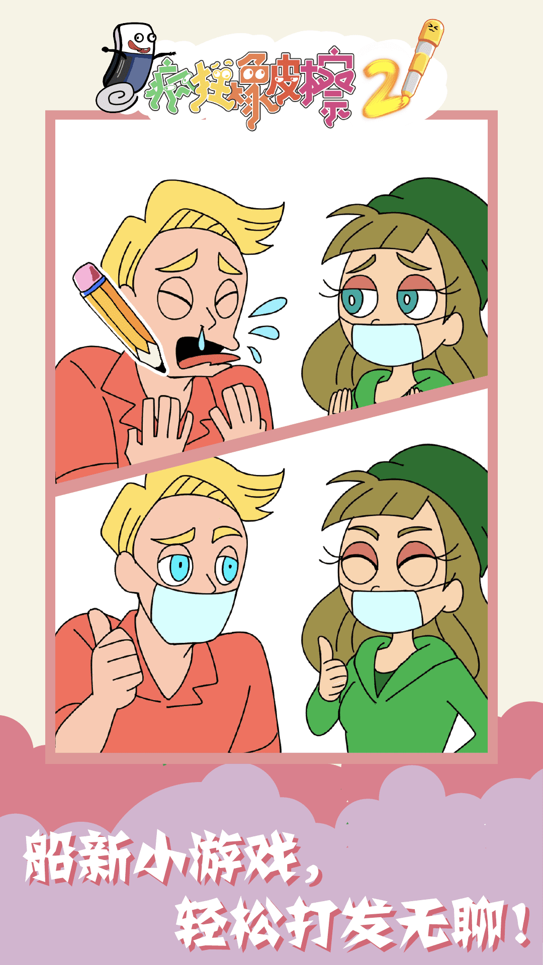 《疯狂橡皮擦2》是一款充满创意与欢乐的解谜冒险游戏,将带给玩家前所未有的脑力挑战体验。在这款游戏中,你将化身为主角,手持一块神奇的橡皮擦,通过擦拭画面来改变场景、解开谜题。游戏采用轻松幽默的叙事风格,搭配夸张搞笑的剧情发展,让玩家在烧脑的同时也能开怀大笑。无论是精心设计的关卡还是出人意料的解谜方式,都会让你爱不释手。游戏还加入了全新角色和更多趣味元素,保证每一关都能带来新鲜感。现在就加入这场奇妙的橡皮擦冒险,开启你的解谜之旅吧!