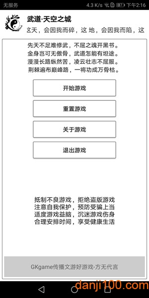 武道天空之城破解版是一款充满武侠风情的角色扮演游戏,玩家将在这个奇幻世界中自由创建角色,开启一段精彩的冒险旅程。游戏通过丰富的随机事件和多样化的成长路径,让每位玩家都能体验到独一无二的武侠人生。无论是打坐修炼、天赋选择,还是武功招式的学习,都将为你的角色带来不同的发展方向。游戏拥有极高的自由度,搭配挂机系统和丰富的副本玩法,让玩家轻松享受不肝不氪的武侠世界。现在就前往单机100手游网下载,开启你的武道传奇吧!