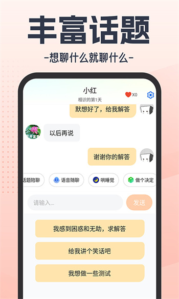 4.具备丰富的互动服务,让你能够更加深入地了解和体验虚拟伴侣的个性和特点,享受极致的社交趣味,释放内心的压力。除了日常对话,还支持角色扮演、情景模拟等趣味互动模式。你可以与虚拟伴侣一起"看电影"、"旅行"甚至"吵架和好",体验恋爱关系的各个阶段和场景。