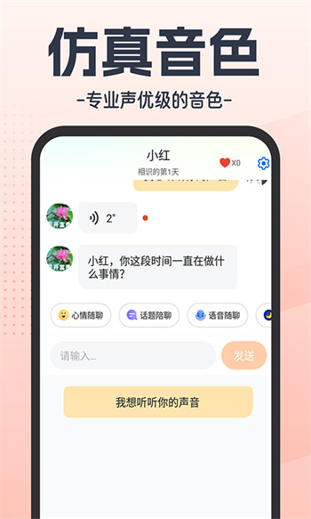 2.你能够分享自己的日常生活、心情和梦想,与虚拟伴侣进行深入的交流,体验一种独特的情感联结。虚拟伴侣会记住你分享的重要生活细节,在后续对话中主动提及,创造持续的情感纽带。系统还支持语音和文字双重交流模式,你可以选择最舒适的方式表达自己,建立更自然的情感连接。