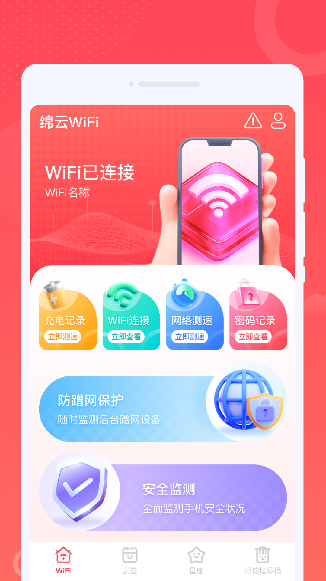 免费连WiFi轻松上网是一款专为用户打造的便捷网络连接工具,能够帮助用户快速搜索并连接附近的免费WiFi热点。无论是外出旅行、办公还是日常娱乐,只需一键操作即可享受稳定、高速的网络服务。该应用界面简洁友好,操作简单,无需复杂设置,适合各类人群使用。同时,它还具备安全检测功能,确保用户连接的WiFi网络安全可靠,避免隐私泄露风险。