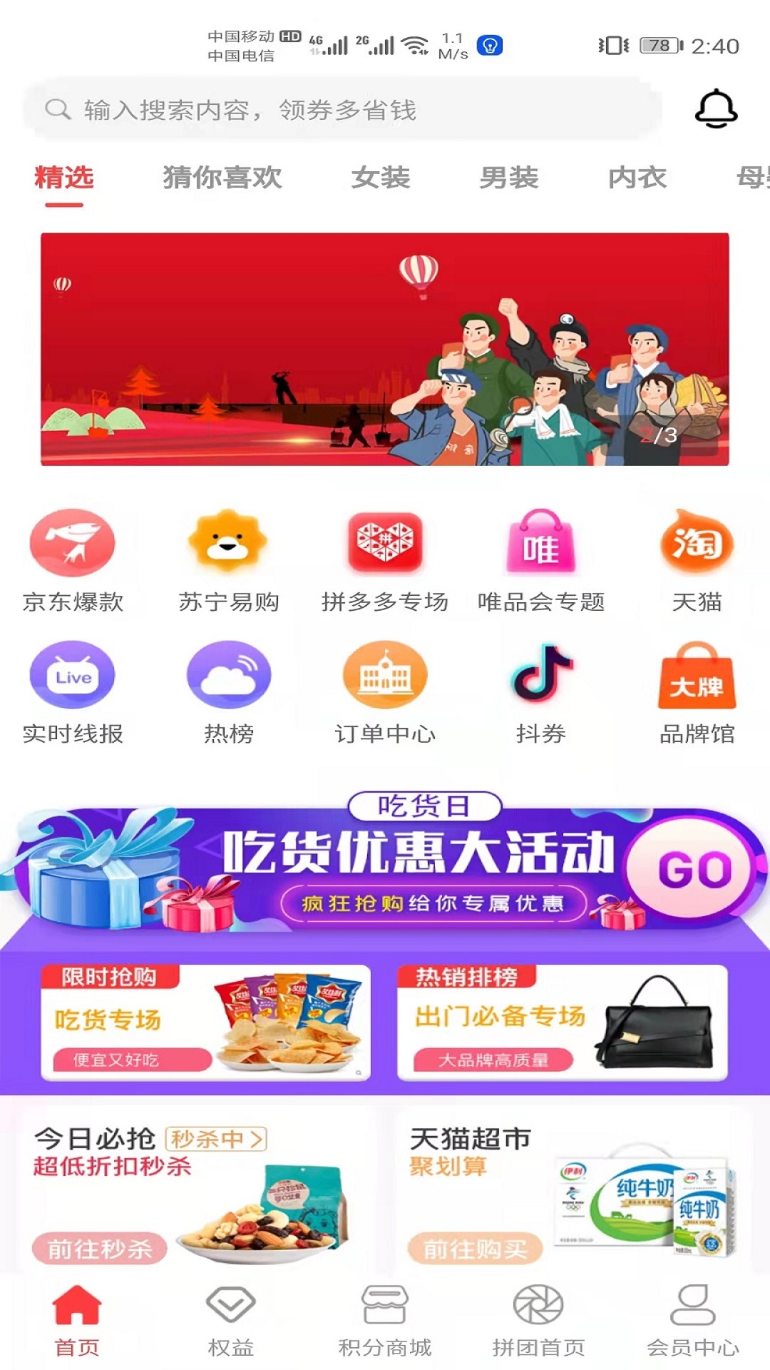 2.好券直播——品牌好物低价抢购。爆款商品秒不停,每日品牌商品优惠券限时疯抢,让您以最低价格买到心仪商品。