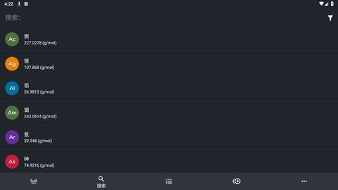 独特的分类筛选功能可将元素按10个类别(如过渡金属、镧系元素等)进行分组查看,筛选结果可直接应用于主界面显示。用户还可以自定义收藏夹,标记重点学习元素。所有设置支持云同步,在不同设备间保持使用习惯。应用体积小巧但功能全面,是化学学习的理想伴侣。