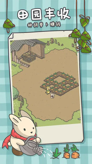 2、这是一款超休闲的经营养成游戏,主角是一只呆萌可爱的小月兔。它将在蘑菇村中开启一段全新的生活,玩家可以通过各种任务和活动帮助月兔成长,体验经营与养成的双重乐趣。