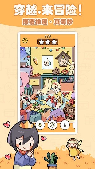 童话侦探是一款画风治愈的休闲解谜小游戏,以寻物解谜为核心玩法。玩家需要在每个场景中仔细观察,找到隐藏的物品来完成闯关任务。游戏的设计充满了细节,每一个关卡都像是一个小小的童话故事,等待着玩家去发现和探索。无论是寻找隐藏的道具,还是解开复杂的谜题,都能让玩家感受到满满的成就感。快来挑战一下,看看你是否能成为最棒的童话侦探!