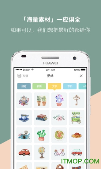 海量手绘精美素材随便贴:精选上万款手绘风格贴纸,涵盖日常用品、美食、植物、动物等各类主题,满足各种场景需求。原创文艺手帐模板随便用:专业设计师精心打造数百套模板,包含周计划、月计划、读书笔记等多种实用类型,一键套用省时省力。彻底告别"手残党"的称号:智能辅助线、自动对齐等功能帮助用户轻松完成精美排版,即使是设计小白也能做出令人惊艳的作品。图文拼贴的乐趣妙不可言:自由组合文字、图片、贴纸等元素,发挥无限创意,享受DIY手账的独特乐趣。