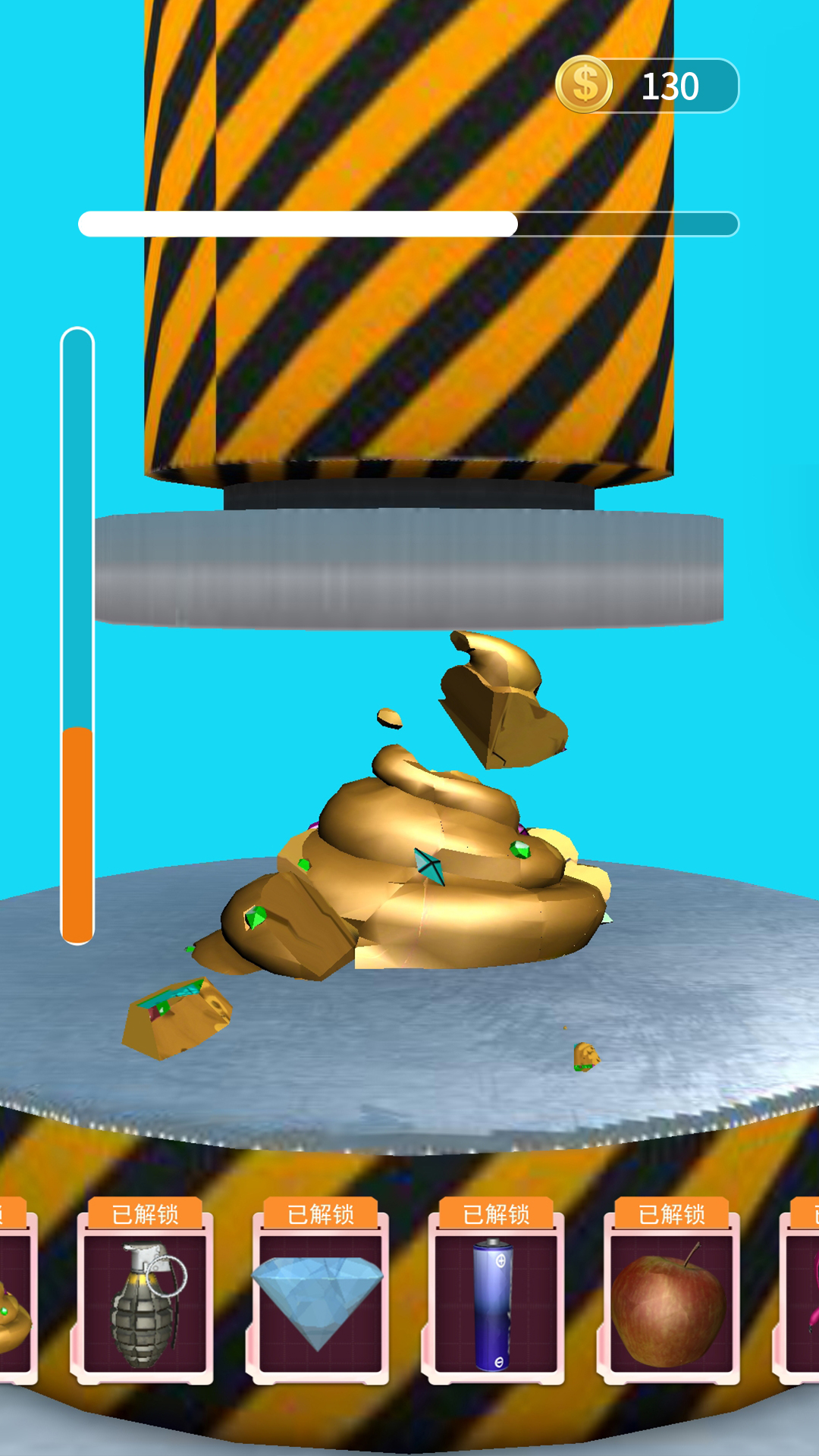 当液压机压碎南瓜时,南瓜会发生什么恰好?难以置信,尖端的现实主义和强大的力量使您有能力粉碎数十个常见对象!缓力是惊人的。您会崩溃的:瓶子?玉米棒子?雷神之锤?车?闹钟(您肯定想粉碎它)南瓜?整个厕所?俄罗斯嵌套娃娃?一台完整的计算机?还有更多!每个破碎的方式都不一样,击碎的次数越多,您获得的更多的击碎力量!超满意,超现实的液压机,然后开始粉碎!游戏操作简单直观,玩家只需将物品放置在液压机下,按下按钮即可开始粉碎。每一次粉碎都会带来不同的效果和音效,让玩家在游戏中不断探索和发现新的乐趣。