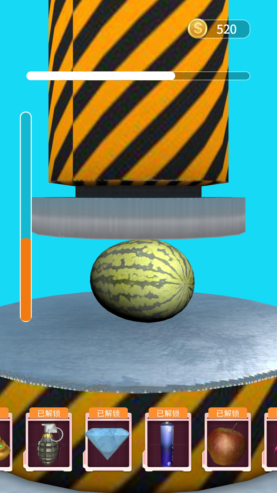 你是否时常焦虑,感到“压力山大”?来试试这款神器吧,使用液压机,用力粉碎各种玩具,将你的压力彻底释放开来,舒缓身心,放松心情~这款游戏不仅能够帮助玩家释放日常生活中的压力,还能带来视觉和听觉上的双重享受。无论是粉碎南瓜、瓶子还是更复杂的物品,每一次操作都充满了惊喜和刺激。快来尝试一下,感受液压机带来的无限乐趣吧!