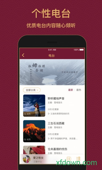 个性电台,优质电台内容随心倾听。根据您的音乐偏好,雪域音乐为您量身定制个性化电台,随时随地畅享您喜爱的音乐。