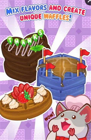 《华夫饼烹饪师》是一款轻松有趣的烹饪模拟游戏,适合所有年龄段的玩家体验。在游戏中,你将化身一只呆萌的小仓鼠,开启一段甜蜜的华夫饼制作之旅。游戏以制作美味华夫饼为核心玩法,玩家可以自由搭配各种口味和造型,还能用糖果、水果等食材进行创意装饰。更重要的是,你需要根据顾客的不同需求定制专属华夫饼,用美味征服每一位顾客的味蕾。清新可爱的画风搭配简单易上手的操作,让这款游戏成为休闲娱乐的绝佳选择。