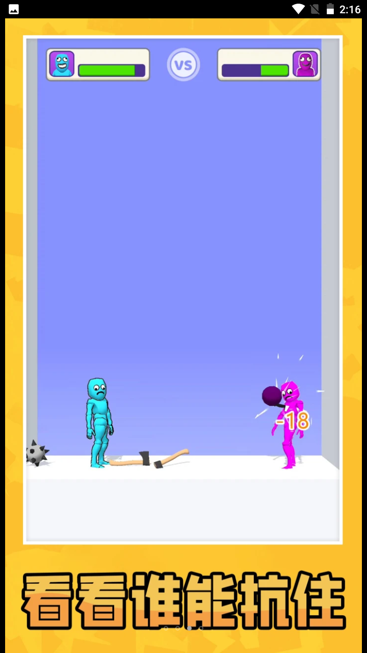 在游戏中,玩家需要操控两个小人角色使用各种奇葩武器展开对决,从平底锅到火箭筒应有尽有。通过精准的走位和时机把握,施展连招组合技将对手击出场外。游戏支持本地双人同屏对战和单人挑战模式,每局比赛都充满意外惊喜。独特的物理效果让角色动作夸张搞笑,获胜条件简单明了——用最富创意的方式将对手击倒。游戏还设有特殊道具系统,随机出现的增益效果能为战局带来更多变数。