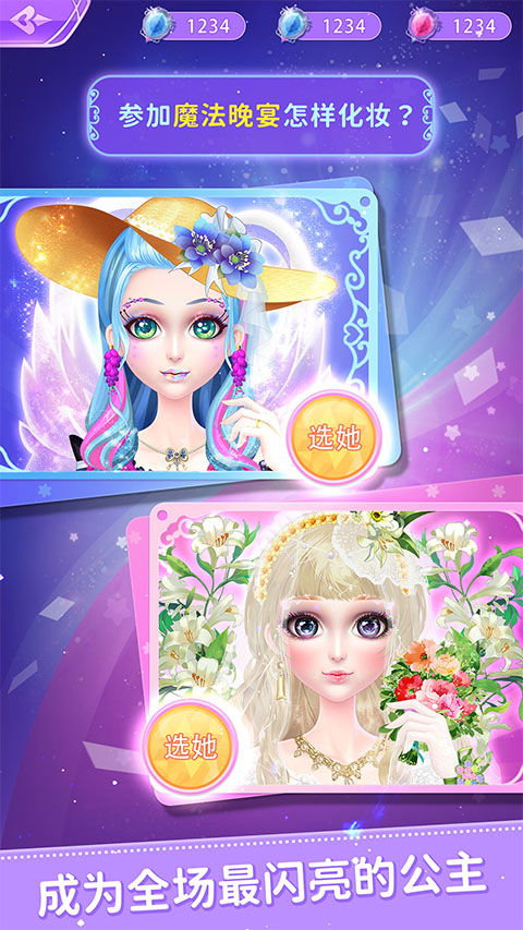 1、可以随心所欲的打造属于你自己的公主形象,你可以匹配多个不同的妆容。游戏的人物建模精细度极高,从发丝飘动到裙摆褶皱都栩栩如生。支持360度自由旋转查看功能,让玩家可以从各个角度欣赏自己的作品。