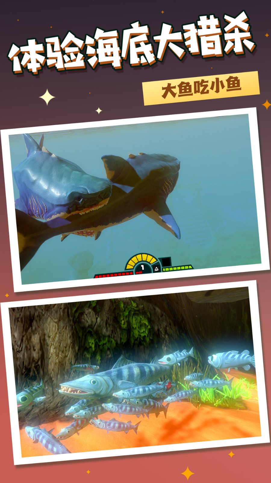 1.自由探索广阔的海洋世界,选择不同生物来加入猎杀进化挑战,让自己成为海洋霸主。游戏中的海洋场景设计精美,从浅海到深海,每个区域都有独特的生物和挑战,让你在探索中不断发现新的惊喜。