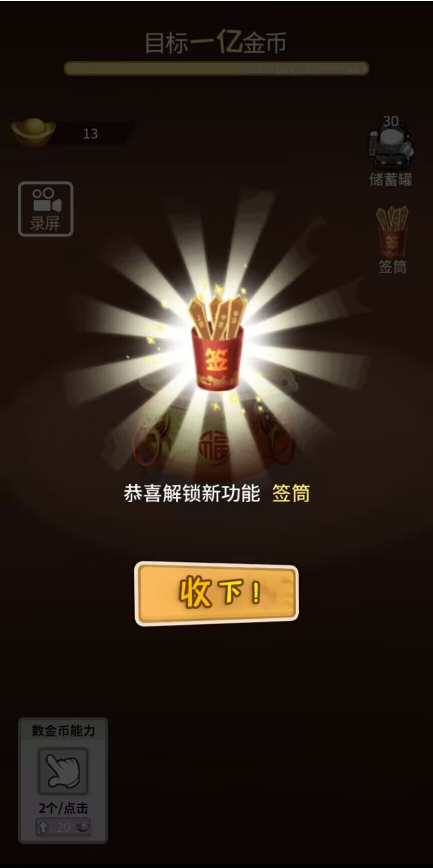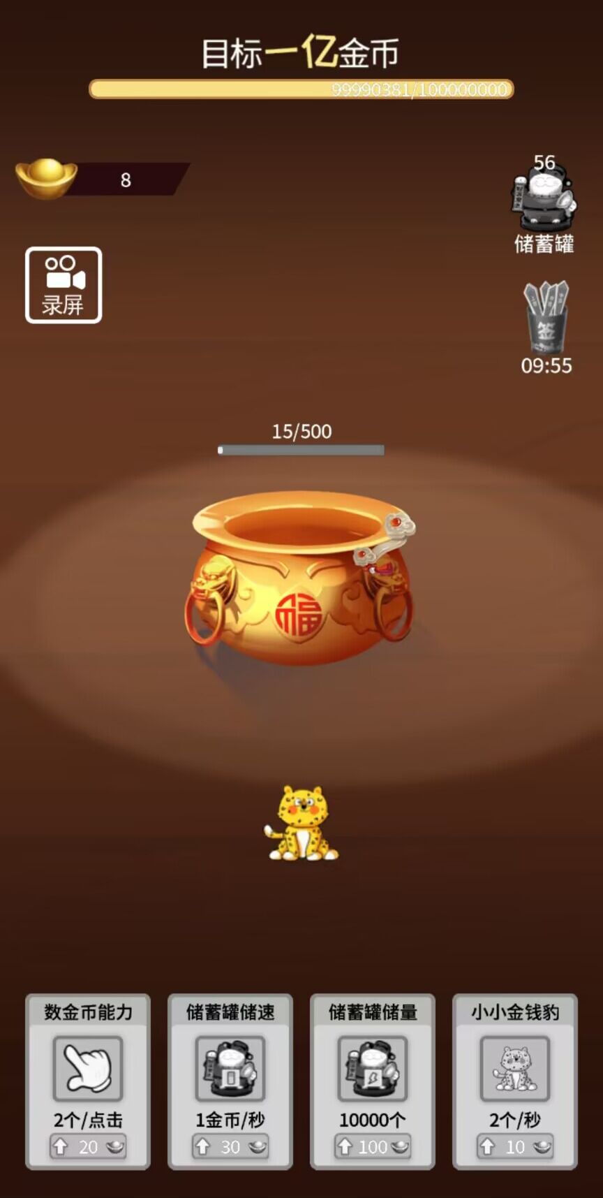 金钱豹富游戏是一款基于电子木鱼概念改编的趣味休闲游戏,玩家只需轻轻敲击屏幕,就能获得金币,逐步实现暴富梦想。游戏操作简单,目标明确——通过不断点击积累财富,最终达到一个亿的目标。无论是新手还是老玩家,都能轻松上手,享受数钱的乐趣。游戏还融入了自动放置和升级机制,让玩家在忙碌时也能持续获得收益。快来体验这款轻松有趣的游戏,开启你的财富之旅吧!