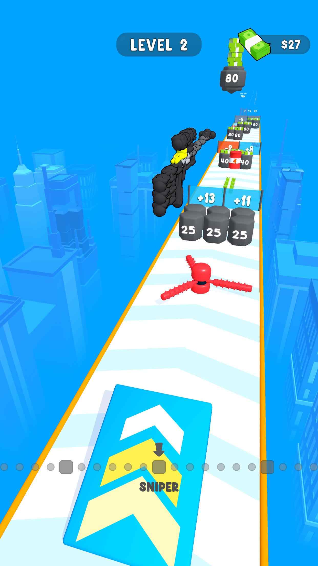 游戏为玩家提供了丰富的定制选项,让玩家可以根据个人喜好调整游戏设置,获得更顺手的操作体验。游戏采用迷人的极简主义3D图形设计,整体画面风格简约而不失精致,给玩家带来轻松愉悦的视觉感受。在游戏过程中,玩家需要控制不断壮大的队伍,跑过各种危险的障碍物,考验玩家的反应能力和策略思维。游戏还设置了多种难度等级,满足不同水平玩家的需求,让每位玩家都能找到适合自己的挑战。