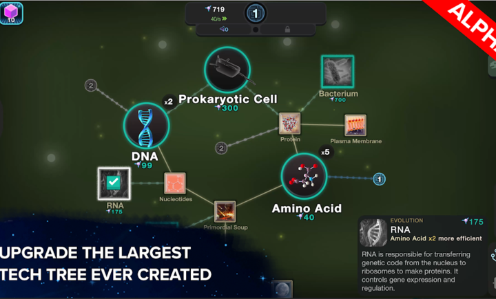 在《从细胞到奇点:现实重启》中,玩家将开启一段跨越数十亿年的生命演化之旅。游戏以科学为基础,精心设计了完整的进化树系统,包含数百种真实存在的生物物种。通过简单的点击操作获取熵值,玩家可以解锁不同的进化路径,从单细胞生物逐步发展到复杂的哺乳动物。游戏特别注重教育价值,每个进化阶段都配有详细的科学说明,让玩家在娱乐中了解DNA变异、自然选择等生物学原理。随着游戏深入,玩家还能探索人类文明的起源,见证科技发展的各个里程碑,体验从原始社会到太空时代的完整历程。