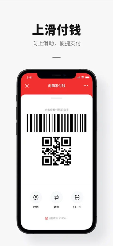 上滑付钱:创新设计的滑屏支付功能,上滑即可快速调出付款码,支付过程仅需1秒。支持自定义支付限额设置,兼顾便捷性与安全性。