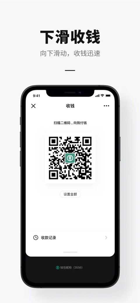 下滑收钱:独创的下滑收款功能,一键生成个人收款码,支持设置收款金额和备注信息。收款即时到账,资金流向清晰可查。