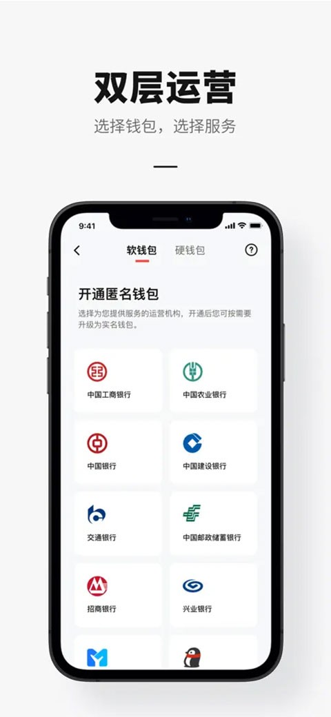 双层运营:采用"央行-商业银行"双层运营架构,用户可自主选择服务银行,享受差异化数字金融服务。系统支持多家商业银行接入,未来还将持续扩大合作范围。