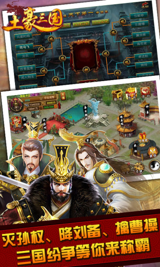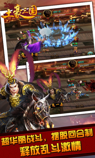 作为一款革新性的三国手游,《土豪三国》打破了传统卡牌游戏的回合制桎梏,采用全即时战斗模式。玩家可以实时操控武将走位、释放技能,体验行云流水般的战斗快感。游戏保留了卡牌收集养成的核心乐趣,同时加入了丰富的策略元素。玩家需要根据敌方阵容调整自己的武将搭配和站位,合理利用地形优势。游戏内设有多种PVE和PVP玩法,包括剧情副本、精英挑战、竞技场、跨服战等,满足不同玩家的需求。社交系统也十分完善,可以组建军团、结交好友,共同征战三国乱世。每日还有登录奖励、在线礼包等福利,让玩家轻松获得成长资源。