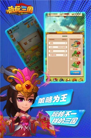 《萌玩三国》是一款以Q版萌系画风打造的全新三国题材手游,完美融合了放置、策略、养成、对战等多种玩法元素。游戏采用独特的卡牌收集系统,让玩家可以招募上百位Q萌可爱的三国名将,组建属于自己的最强阵容。创新的策略对战玩法打破了传统SLG的单调模式,带来更加热血刺激的竞技体验。丰富的养成系统让每位武将都能通过培养不断提升实力,而24小时不间断的资源采集机制则让玩家随时都能享受游戏乐趣。无论是单人副本挑战还是多人实时对战,都能让玩家充分感受到三国乱世的激情与魅力。