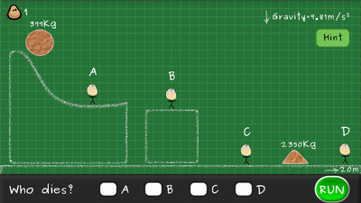 游戏采用多选答题机制,玩家需要准确判断所有会因物理作用而死亡的角色才能通关。随着关卡推进,游戏会逐步引入重力、运动物体、虫洞等复杂物理元素,考验玩家对牛顿运动定律的理解深度。每个关卡都经过精心设计,既包含基础物理现象也暗藏出人意料的机关陷阱,需要玩家仔细观察场景中的每个细节才能做出正确判断。