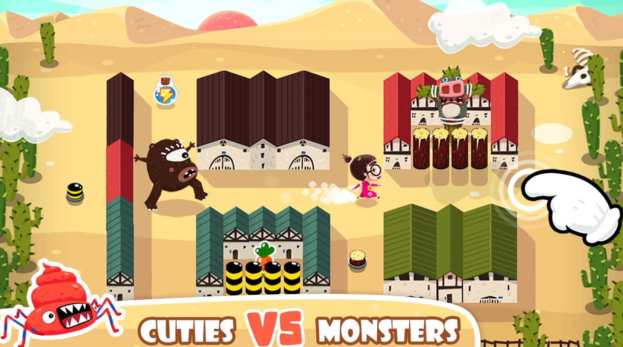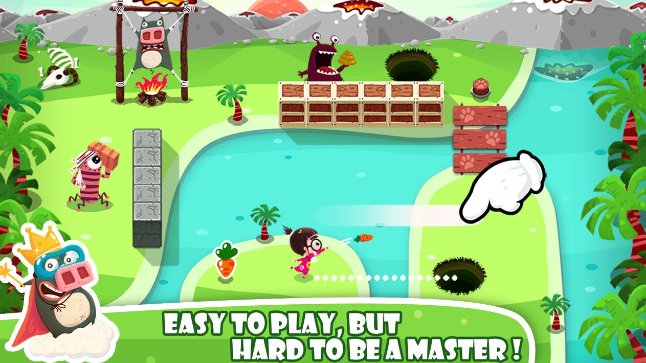 游戏的核心玩法是操控小女孩通过扔萝卜引诱怪物进入陷阱。玩家需要灵活走位,利用地形和道具将怪物引入坑中,同时躲避怪物的追击。游戏设计了多种不同形象的怪物,每个怪物都有独特的行为模式,增加了挑战性。当玩家成功引诱怪物吃完所有萝卜后,即可通关并营救被困的小猪。这种创新的操作方式为玩家带来了新鲜刺激的游戏体验。