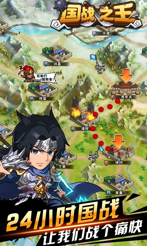 【24小时国战,让我们战个痛快】全天候开放的国战系统支持万人同屏对战,玩家可以随时参与激烈的领土争夺,体验真实的三国争霸;