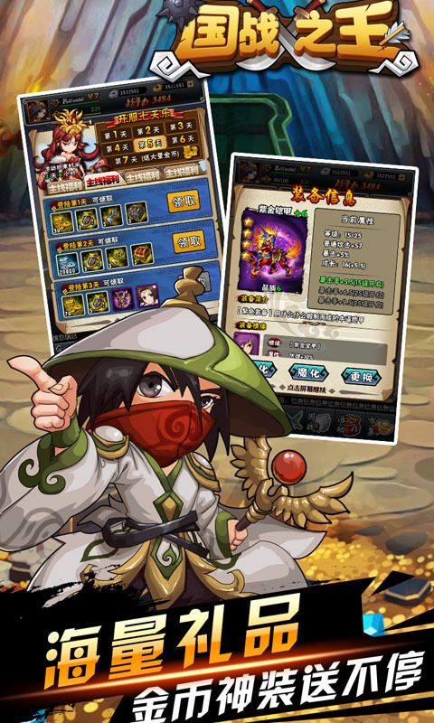 【海量金币疯狂放送】游戏首周登录奖励丰厚,累计可获得上万金币,还有多件紫色装备和武将相赠,帮助玩家快速提升战力;