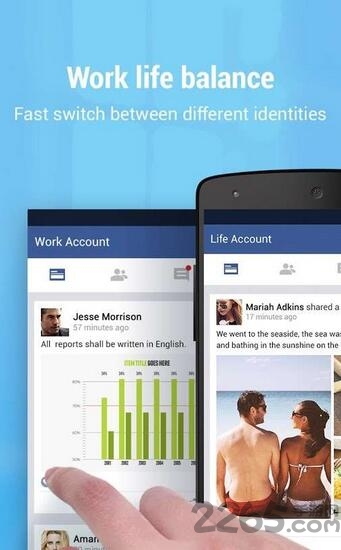 创新的平行空间技术可创建完全隔离的应用运行环境,每个分身应用都拥有独立的存储空间和运行进程。您可以在工作账号和生活账号之间自由切换,接收不同账号的消息通知而互不干扰,就像拥有多部手机一样方便。