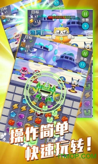 本作以开心超人保卫家园"星星球"为主线剧情,玩家将带领超人团队对抗"大大怪将军"和"小小怪下士"率领的邪恶势力。游戏不仅忠实还原了《开心宝贝》原版剧情,还创新性地将RPG角色成长机制融入消除类玩法中。玩家需要通过连线消除来发动攻击,同时还要收集资源培养超人角色。独特的超人变身系统是本作的一大亮点,当能量积攒到一定程度时,超人可以进行华丽变身,获得更强大的战斗力。游戏还加入了丰富的策略元素,玩家需要根据不同关卡的特点调整战术。