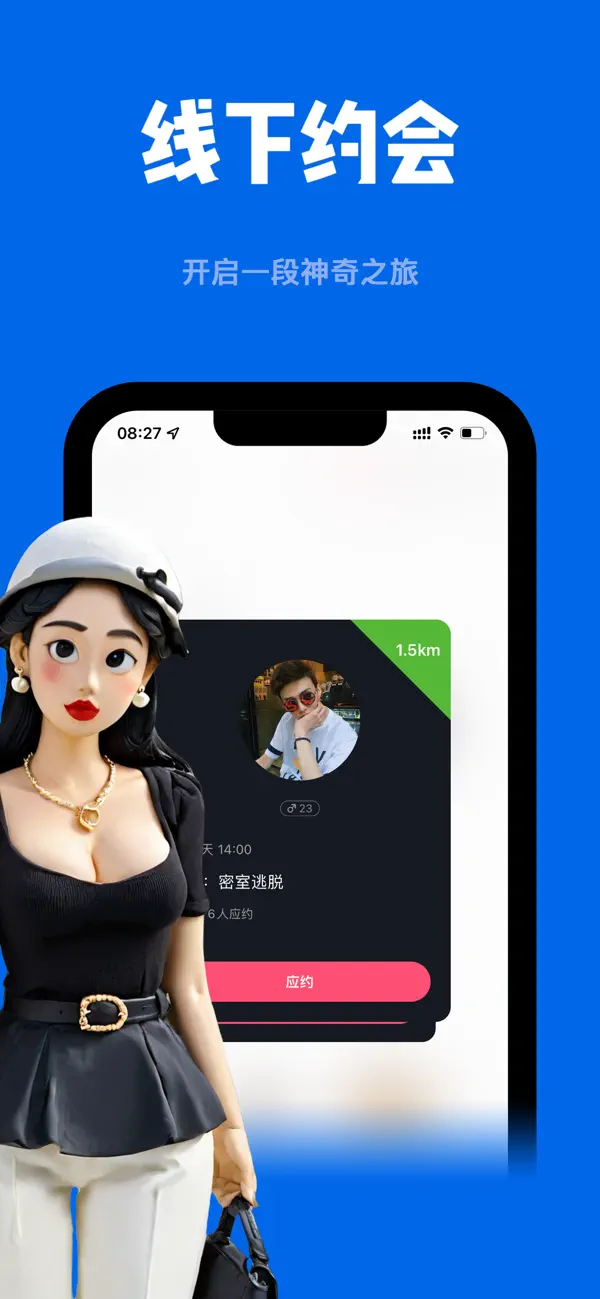 即时邀约:创新的"一键邀约"功能,用户可快速发起约会请求,对方确认后即可线下见面,省去繁琐流程。