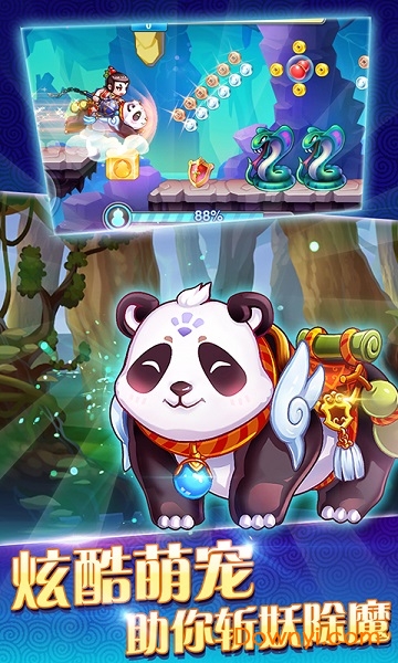 人物进阶技能炫酷,各路神宠坐骑合体助战。每个葫芦兄弟都拥有独特的终极技能,当能量积满时可释放毁天灭地的大招,特效华丽震撼。