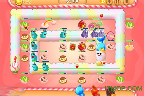 《吃货围城》精心设计了三大主题关卡世界:糖果世界、奶油世界和餐桌世界,每个世界都呈现出独特的视觉风格和游戏体验。每个大关卡包含12个精心设计的小关卡,每个小关卡都会限定可使用的美食塔类型,增加了游戏的策略性和挑战性。游戏设置了多种过关条件,包括击败指定波数的敌人或在限定时间内消灭特定目标等。要获得三星评价,玩家需要满足三个条件:成功通关、击破所有障碍物(其中可能隐藏着惊喜奖励或防御塔)、确保美食国王的安全。游戏难度循序渐进,既有适合新手的简单关卡,也有需要深思熟虑才能通过的挑战性关卡。随着游戏进程,玩家还能解锁更多有趣的游戏内容和特殊技能。