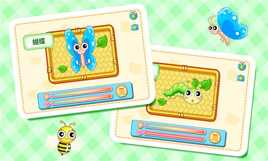 1、领养你喜欢的昆虫!游戏提供了十余种常见昆虫供小朋友选择,包括色彩斑斓的蝴蝶、勤劳的蚂蚁、可爱的瓢虫等。每种昆虫都配有标准发音和趣味介绍,点击屏幕就能听到它们的名字。小朋友要负责照顾这些昆虫宝宝,给它们喂食、清洁,看着它们一天天长大。互动过程中还会触发各种趣味小动画,让学习过程充满惊喜。