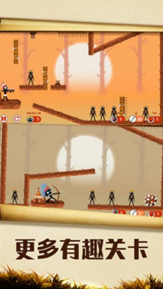 游戏采用简约的黑白风格设计,所有火柴人都以统一的黑色呈现,这种设计不仅让画面更加简洁明了,也使得敌人更容易被发现。即使敌人试图躲藏,鲜明的黑色轮廓也能让玩家快速锁定目标。游戏中的主要武器是弓箭,每位英雄都具备出色的射箭能力,玩家可以通过精准的射击来消灭敌人。操作简单易上手,但想要精通则需要不断练习。流畅的动作设计和真实的物理效果,让每一次射击都充满成就感。