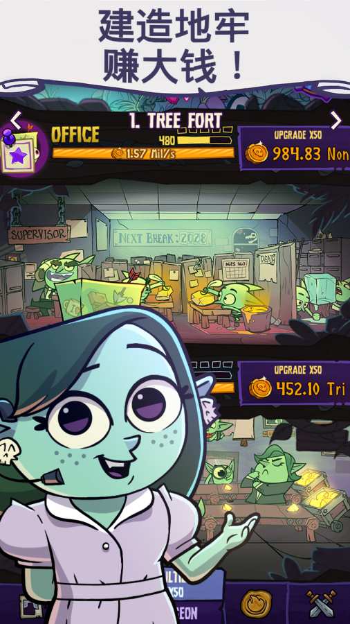 3、地牢建设系统极具创意,玩家可以设计包含金鹅孵化场、美发沙龙等奇葩房间的地下迷宫,每个房间都会影响整体收益;